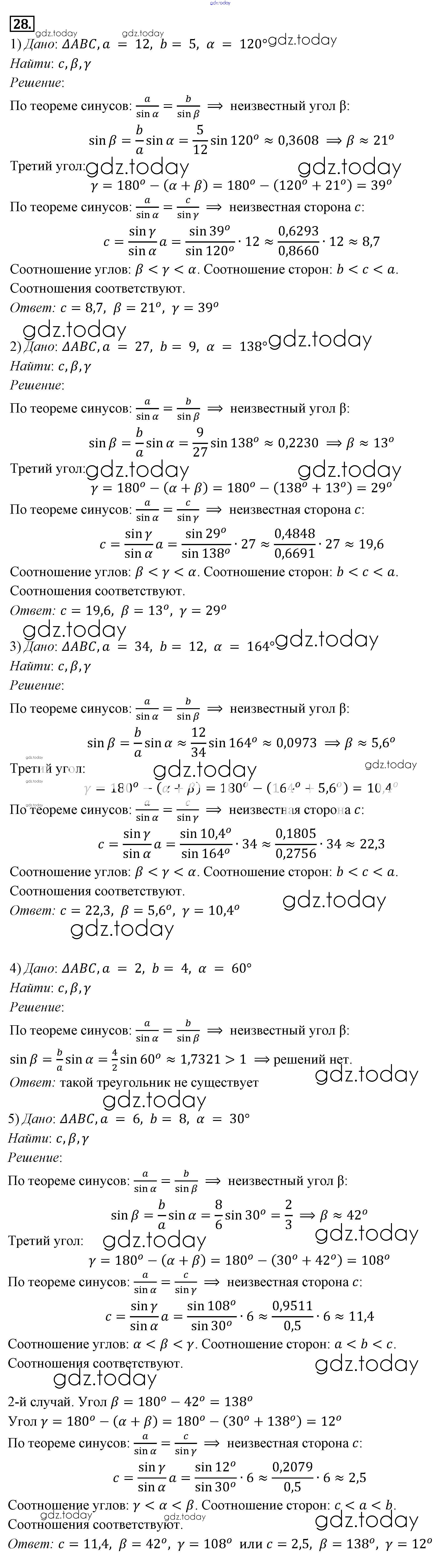 На страницах сайта gdz.today вы найдете учебный и вспомогательный материал, направленный на улучшения знаний школьной программы. ГДЗ - онлайн мир знаний Решение к §12. Решение треугольников 28 Учебнику по Геометрии для 7-9 класса Погорелов Просвещение 2014