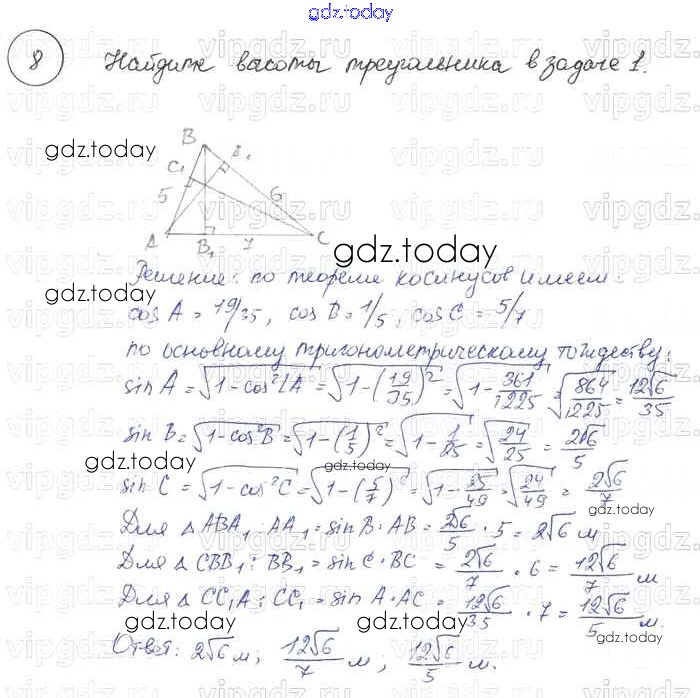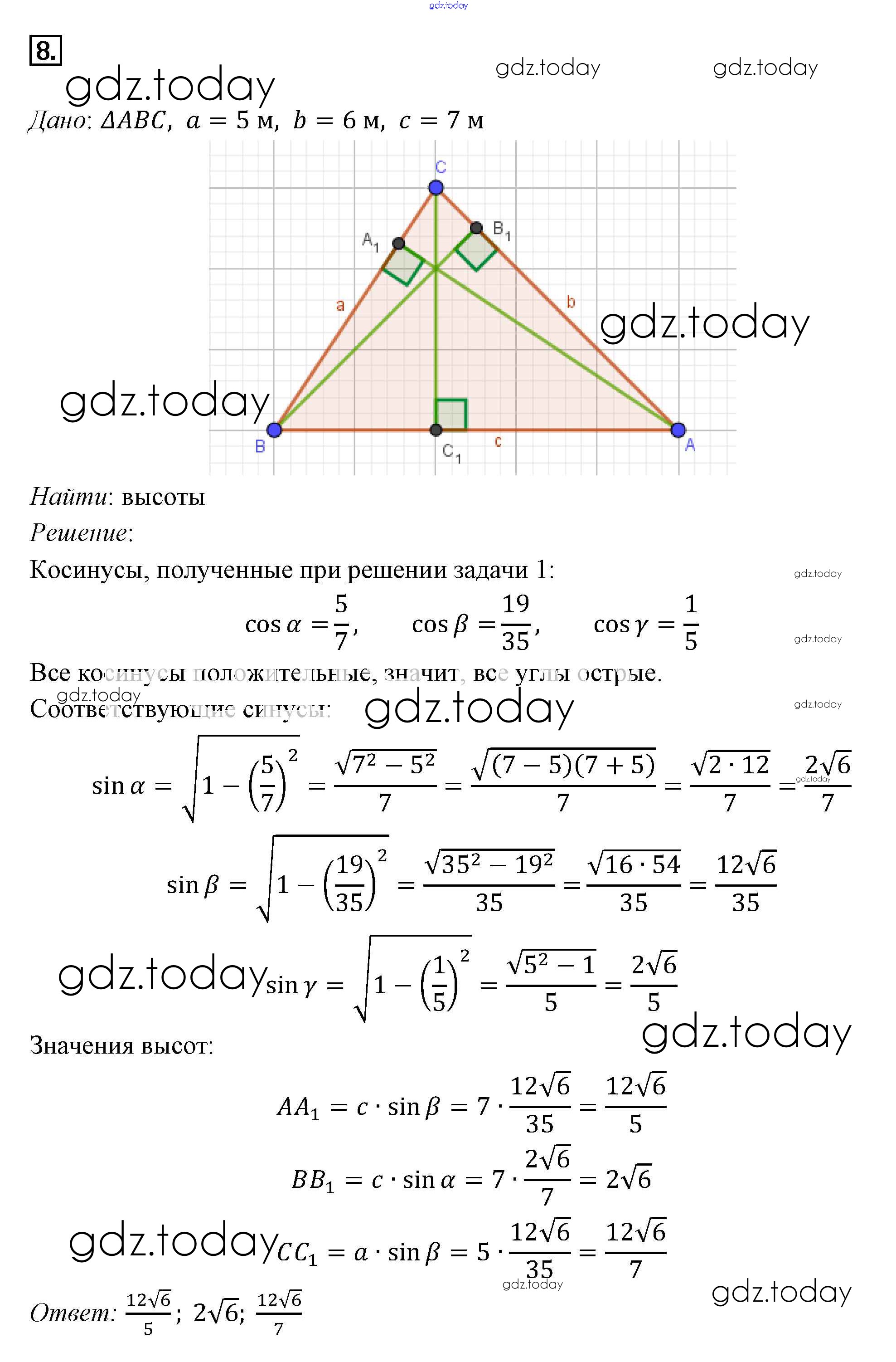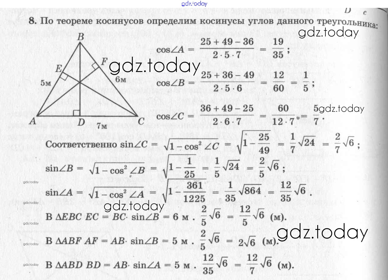 На страницах сайта gdz.today вы найдете учебный и вспомогательный материал, направленный на улучшения знаний школьной программы. ГДЗ - онлайн мир знаний Решение к §12. Решение треугольников 8 Учебнику по Геометрии для 7-9 класса Погорелов Просвещение 2014