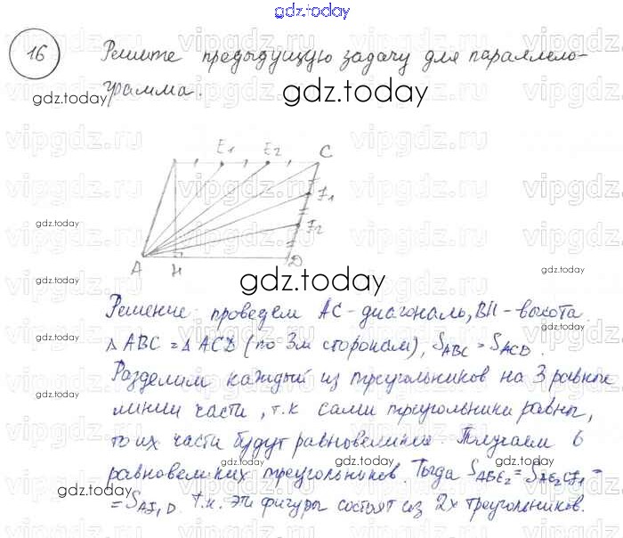 На страницах сайта gdz.today вы найдете учебный и вспомогательный материал, направленный на улучшения знаний школьной программы. ГДЗ - онлайн мир знаний Решение к §14. Площади фигур 16 Учебнику по Геометрии для 7-9 класса Погорелов Просвещение 2014