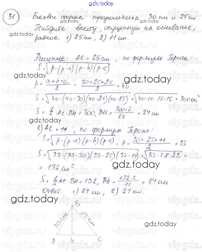 Ответы к Решение к §14. Площади фигур 31 Учебнику по Геометрии для 7-9 класса Погорелов Просвещение 2014