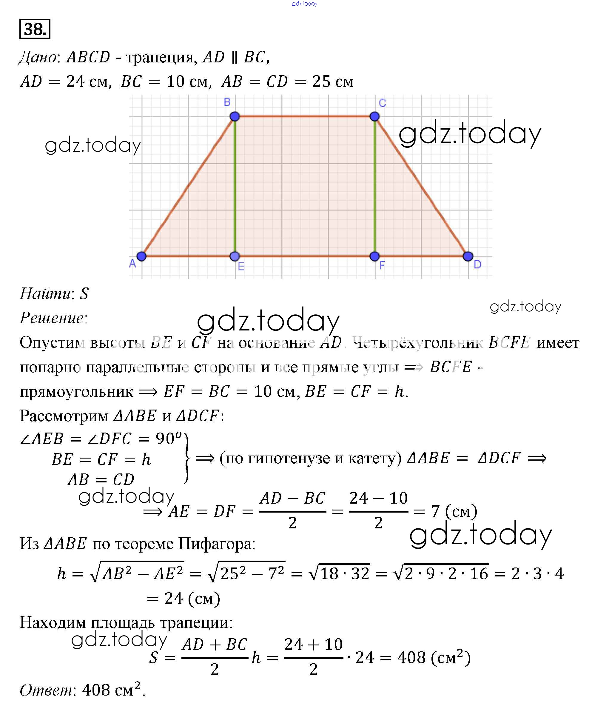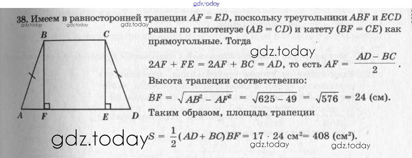 Ответы к Решение к §14. Площади фигур 38 Учебнику по Геометрии для 7-9 класса Погорелов Просвещение 2014