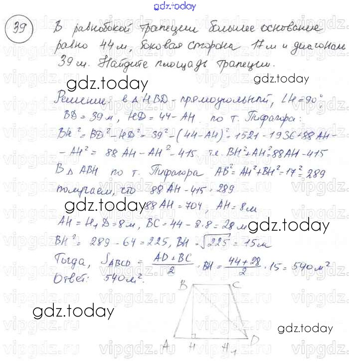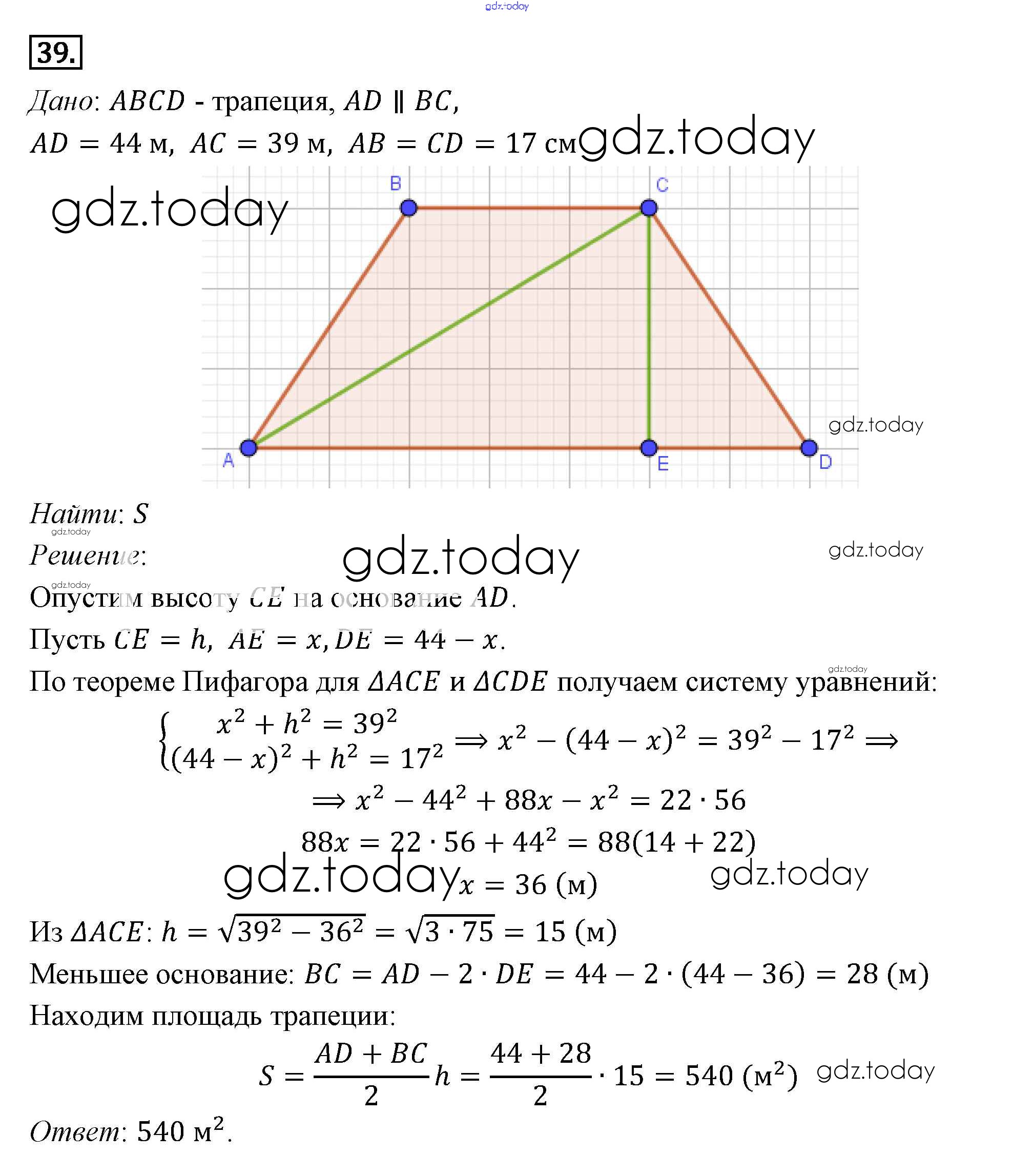 На страницах сайта gdz.today вы найдете учебный и вспомогательный материал, направленный на улучшения знаний школьной программы. ГДЗ - онлайн мир знаний Решение к §14. Площади фигур 39 Учебнику по Геометрии для 7-9 класса Погорелов Просвещение 2014