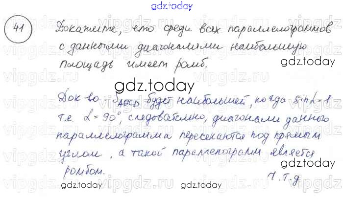 На страницах сайта gdz.today вы найдете учебный и вспомогательный материал, направленный на улучшения знаний школьной программы. ГДЗ - онлайн мир знаний Решение к §14. Площади фигур 41 Учебнику по Геометрии для 7-9 класса Погорелов Просвещение 2014