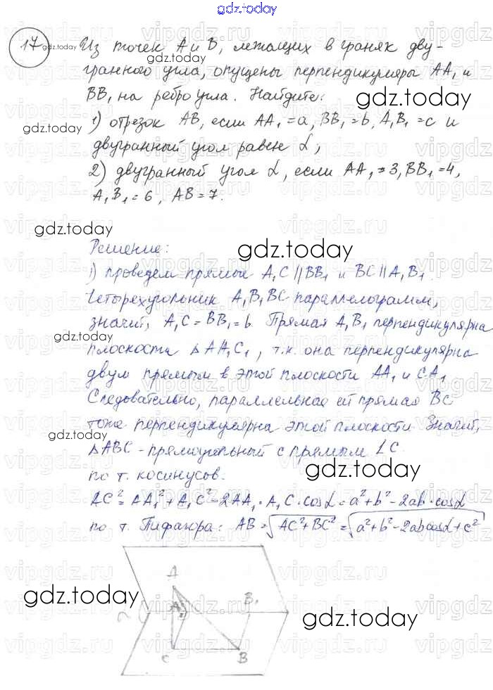 Ответы к Решение к §15. Элементы стереометрии 17 Учебнику по Геометрии для 7-9 класса Погорелов Просвещение 2014