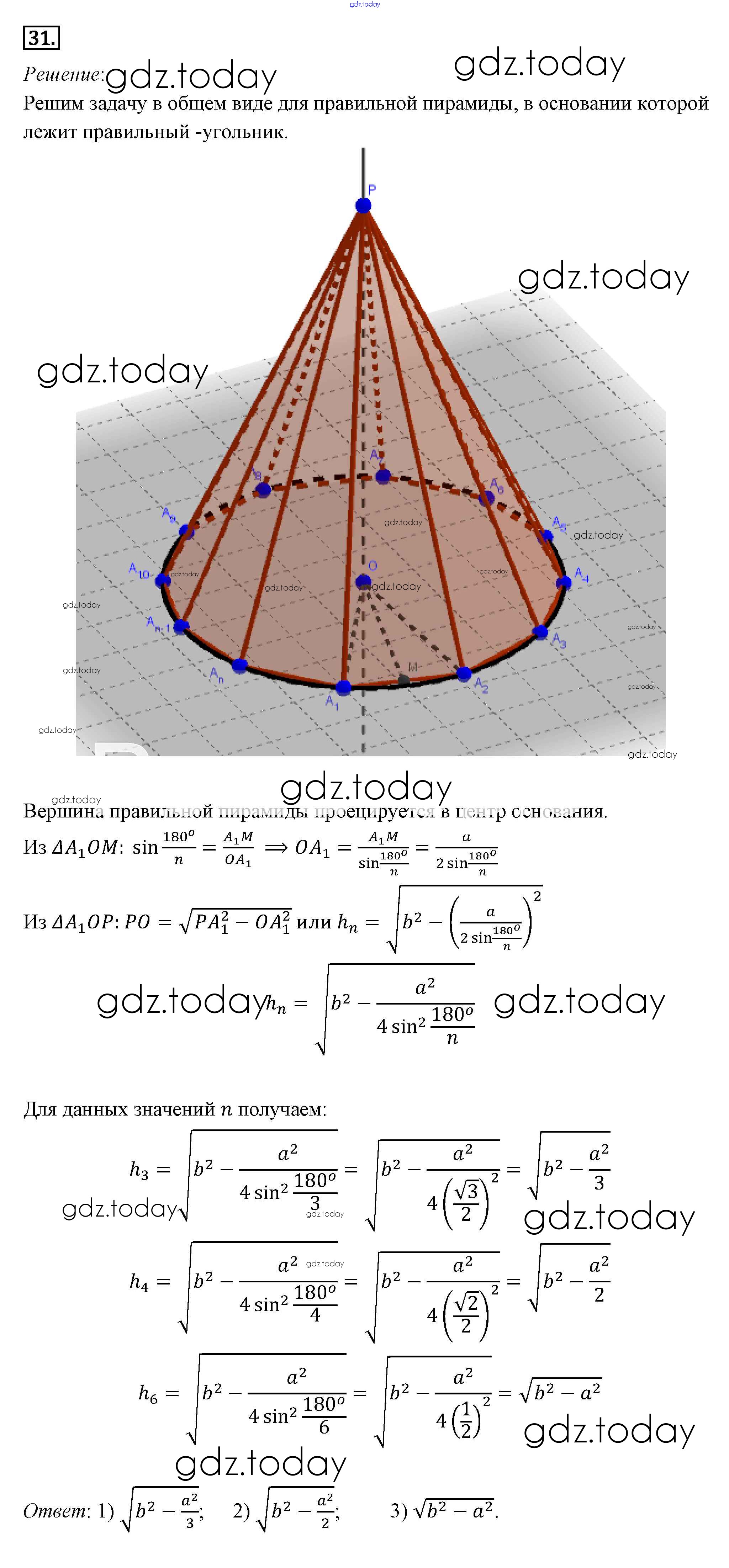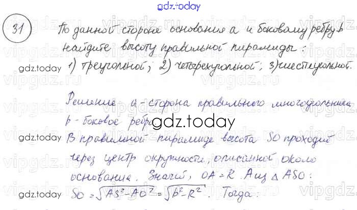 Ответы к Решение к §15. Элементы стереометрии 31 Учебнику по Геометрии для 7-9 класса Погорелов Просвещение 2014