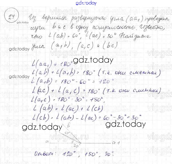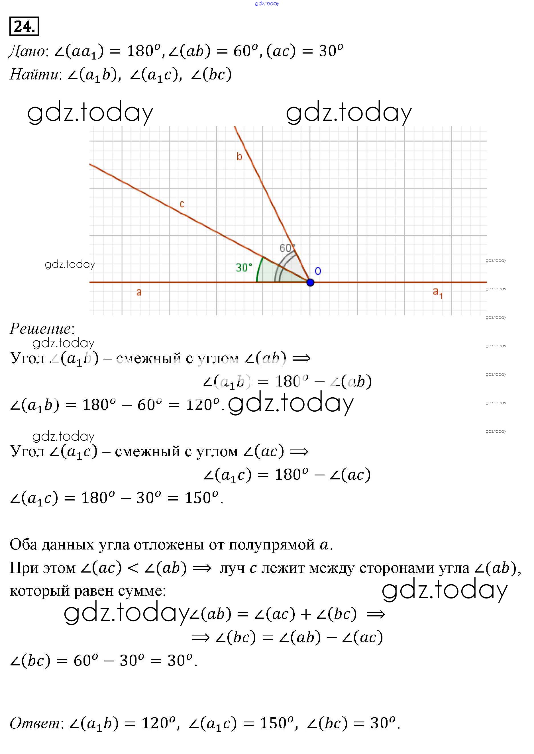 Ответы к Решение к §2. Смежные и вертикальные углы 24 Учебнику по Геометрии для 7-9 класса Погорелов Просвещение 2014