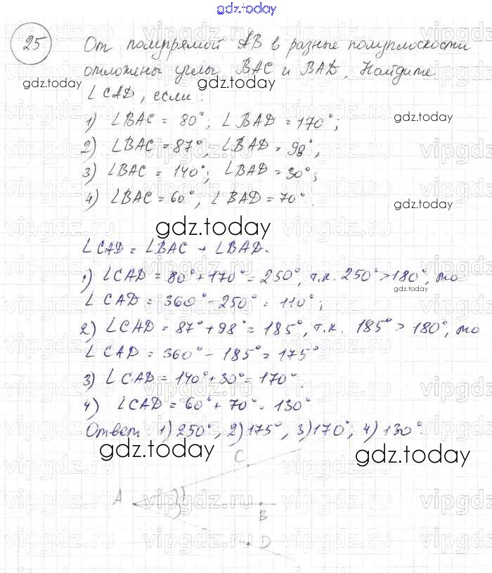 Ответы к Решение к §2. Смежные и вертикальные углы 25 Учебнику по Геометрии для 7-9 класса Погорелов Просвещение 2014
