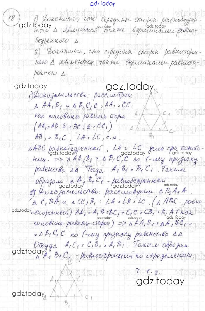 На страницах сайта gdz.today вы найдете учебный и вспомогательный материал, направленный на улучшения знаний школьной программы. ГДЗ - онлайн мир знаний Решение к §3. Признаки равенства треугольников 18 Учебнику по Геометрии для 7-9 класса Погорелов Просвещение 2014
