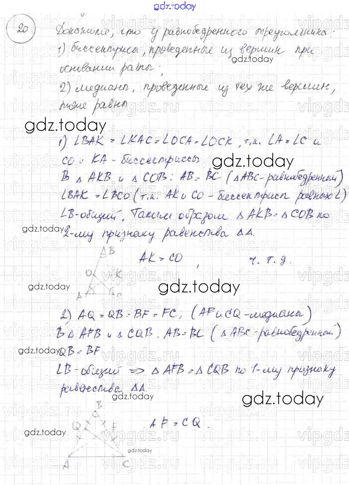 Ответы к Решение к §3. Признаки равенства треугольников 20 Учебнику по Геометрии для 7-9 класса Погорелов Просвещение 2014