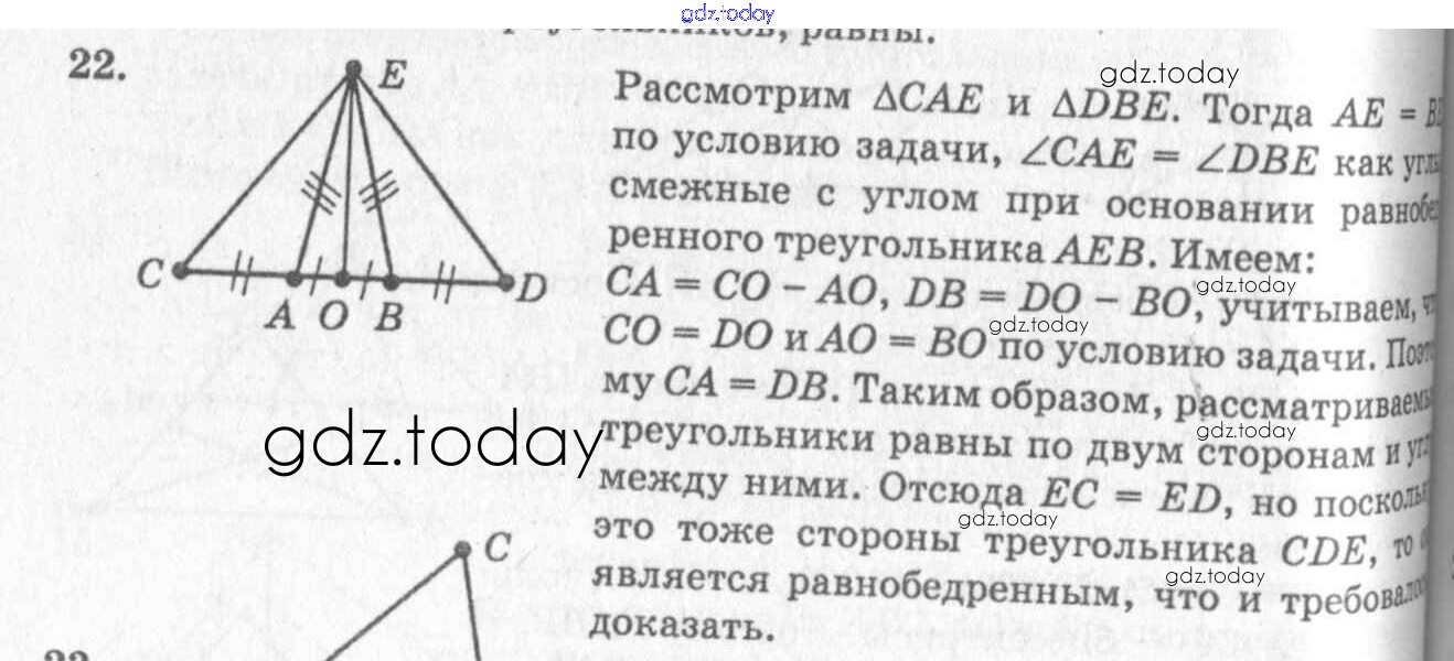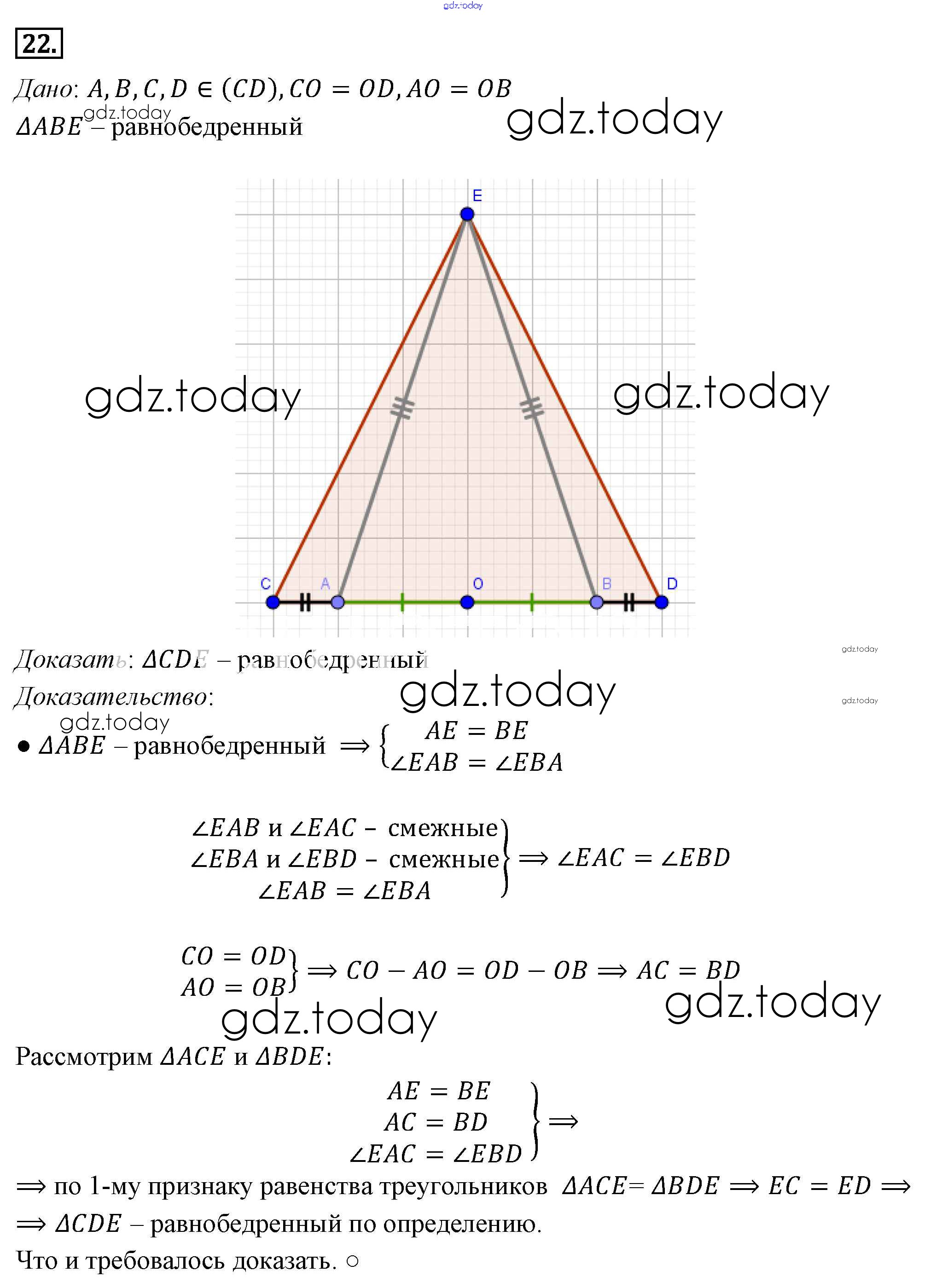 Ответы к Решение к §3. Признаки равенства треугольников 22 Учебнику по Геометрии для 7-9 класса Погорелов Просвещение 2014
