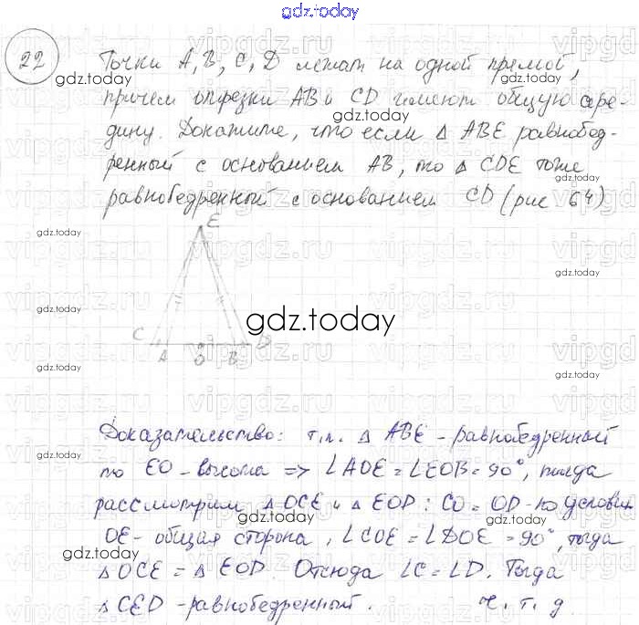 На страницах сайта gdz.today вы найдете учебный и вспомогательный материал, направленный на улучшения знаний школьной программы. ГДЗ - онлайн мир знаний Решение к §3. Признаки равенства треугольников 22 Учебнику по Геометрии для 7-9 класса Погорелов Просвещение 2014