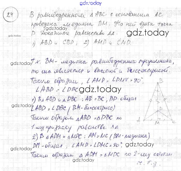 На страницах сайта gdz.today вы найдете учебный и вспомогательный материал, направленный на улучшения знаний школьной программы. ГДЗ - онлайн мир знаний Решение к §3. Признаки равенства треугольников 24 Учебнику по Геометрии для 7-9 класса Погорелов Просвещение 2014