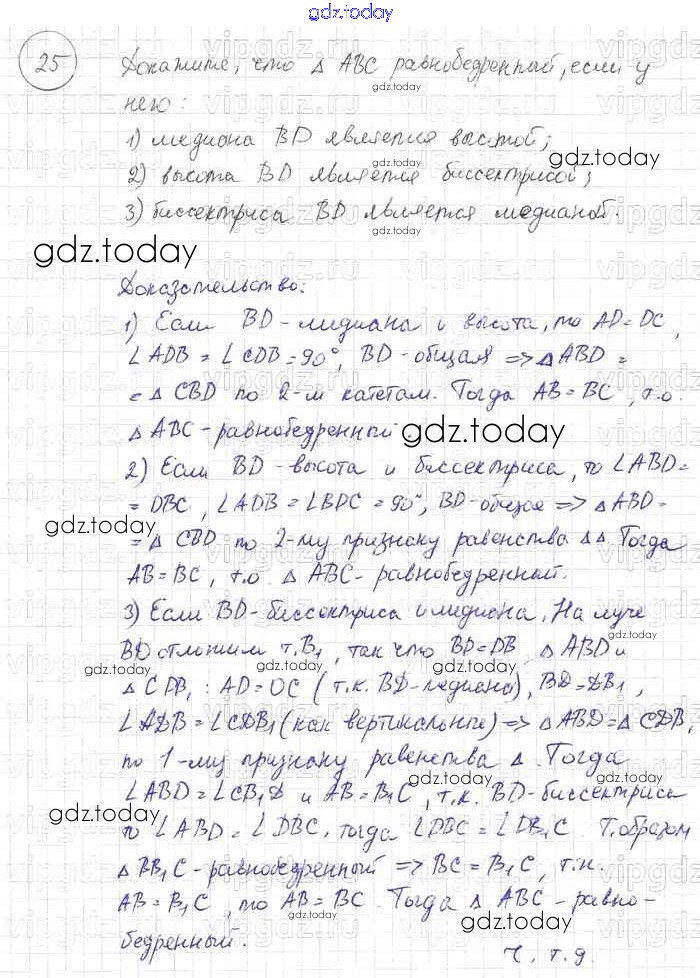 На страницах сайта gdz.today вы найдете учебный и вспомогательный материал, направленный на улучшения знаний школьной программы. ГДЗ - онлайн мир знаний Решение к §3. Признаки равенства треугольников 25 Учебнику по Геометрии для 7-9 класса Погорелов Просвещение 2014