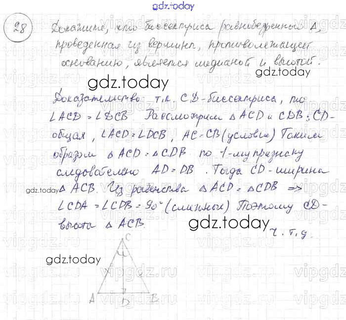На страницах сайта gdz.today вы найдете учебный и вспомогательный материал, направленный на улучшения знаний школьной программы. ГДЗ - онлайн мир знаний Решение к §3. Признаки равенства треугольников 28 Учебнику по Геометрии для 7-9 класса Погорелов Просвещение 2014
