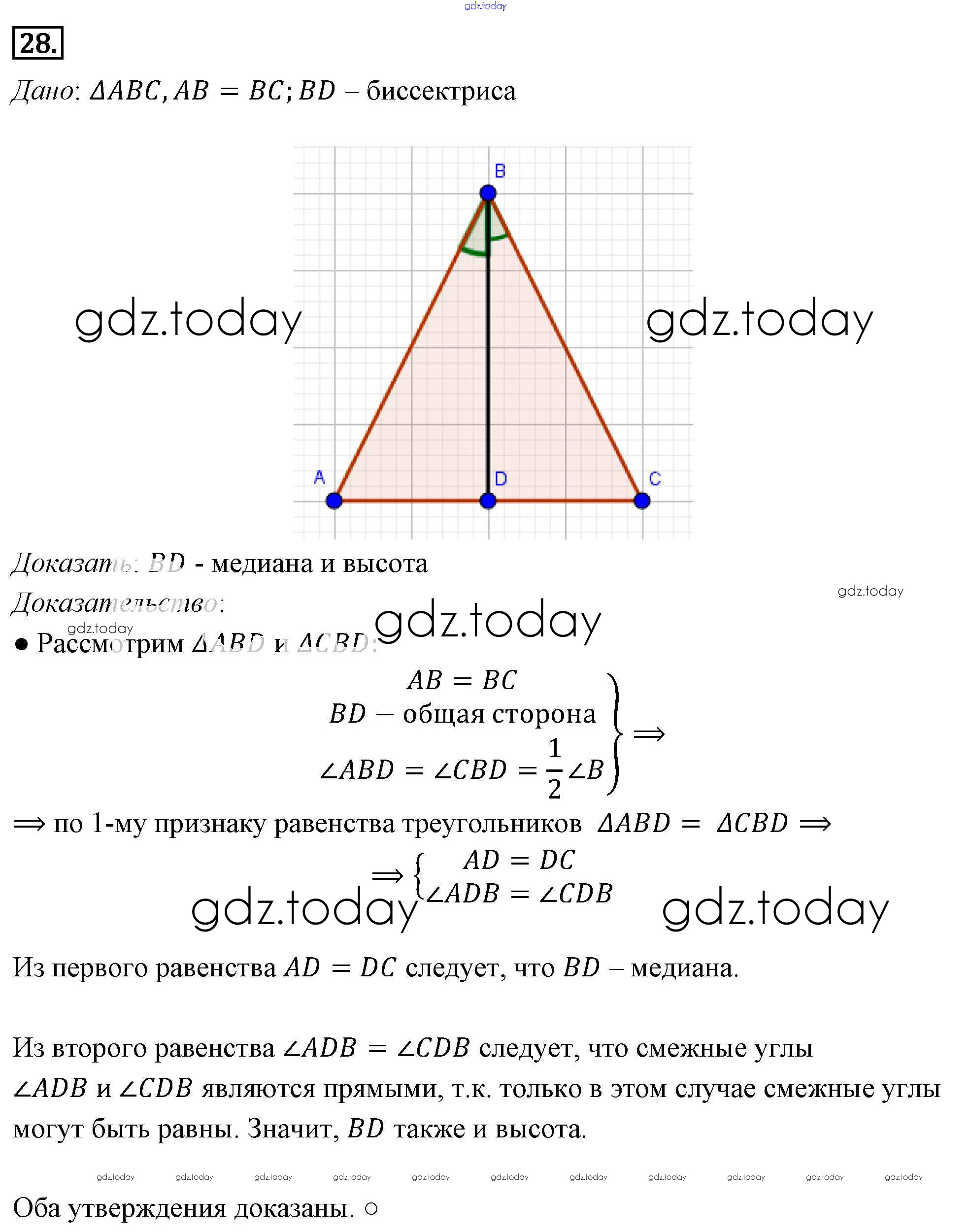 Ответы к Решение к §3. Признаки равенства треугольников 28 Учебнику по Геометрии для 7-9 класса Погорелов Просвещение 2014