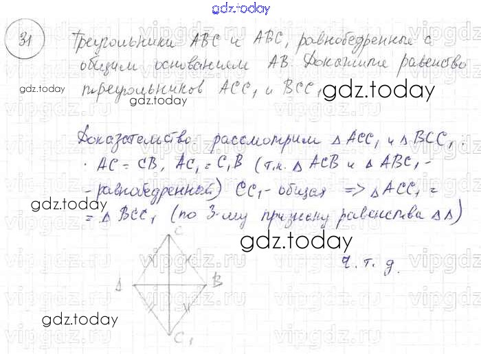 Ответы к Решение к §3. Признаки равенства треугольников 31 Учебнику по Геометрии для 7-9 класса Погорелов Просвещение 2014