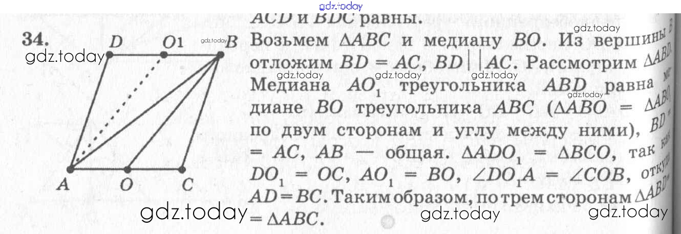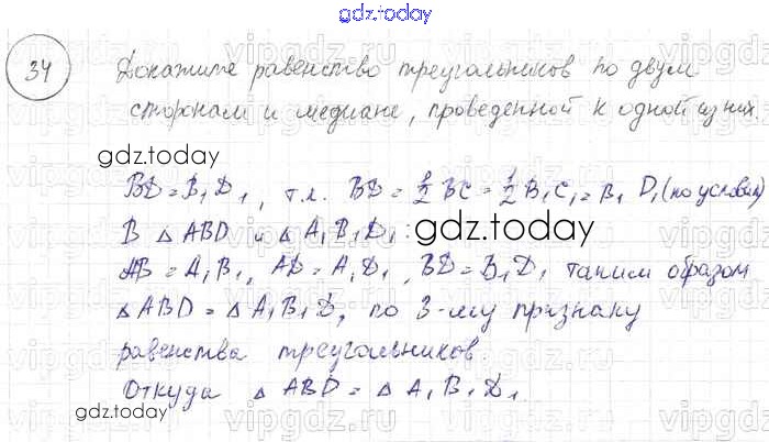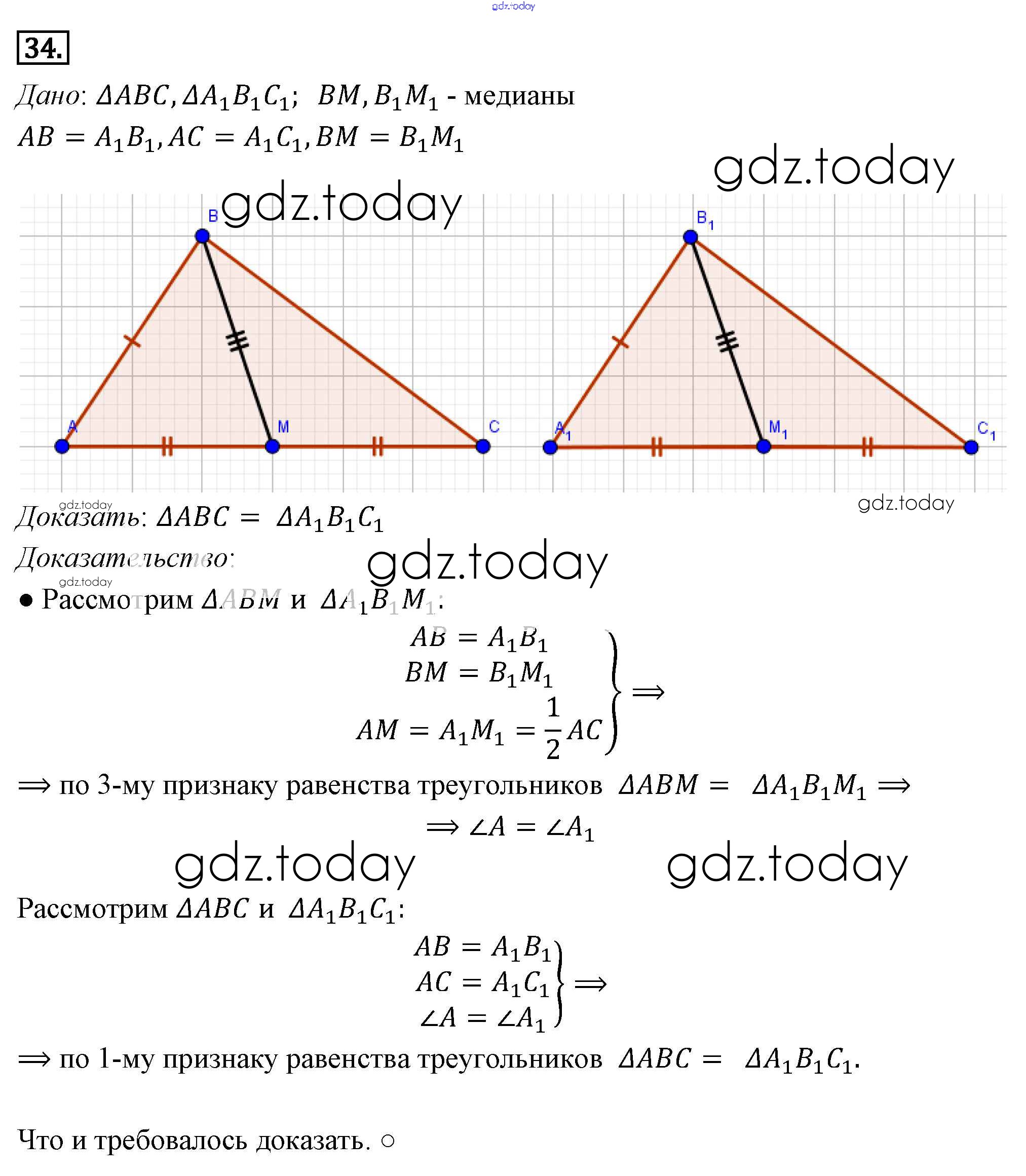 Ответы к Решение к §3. Признаки равенства треугольников 34 Учебнику по Геометрии для 7-9 класса Погорелов Просвещение 2014