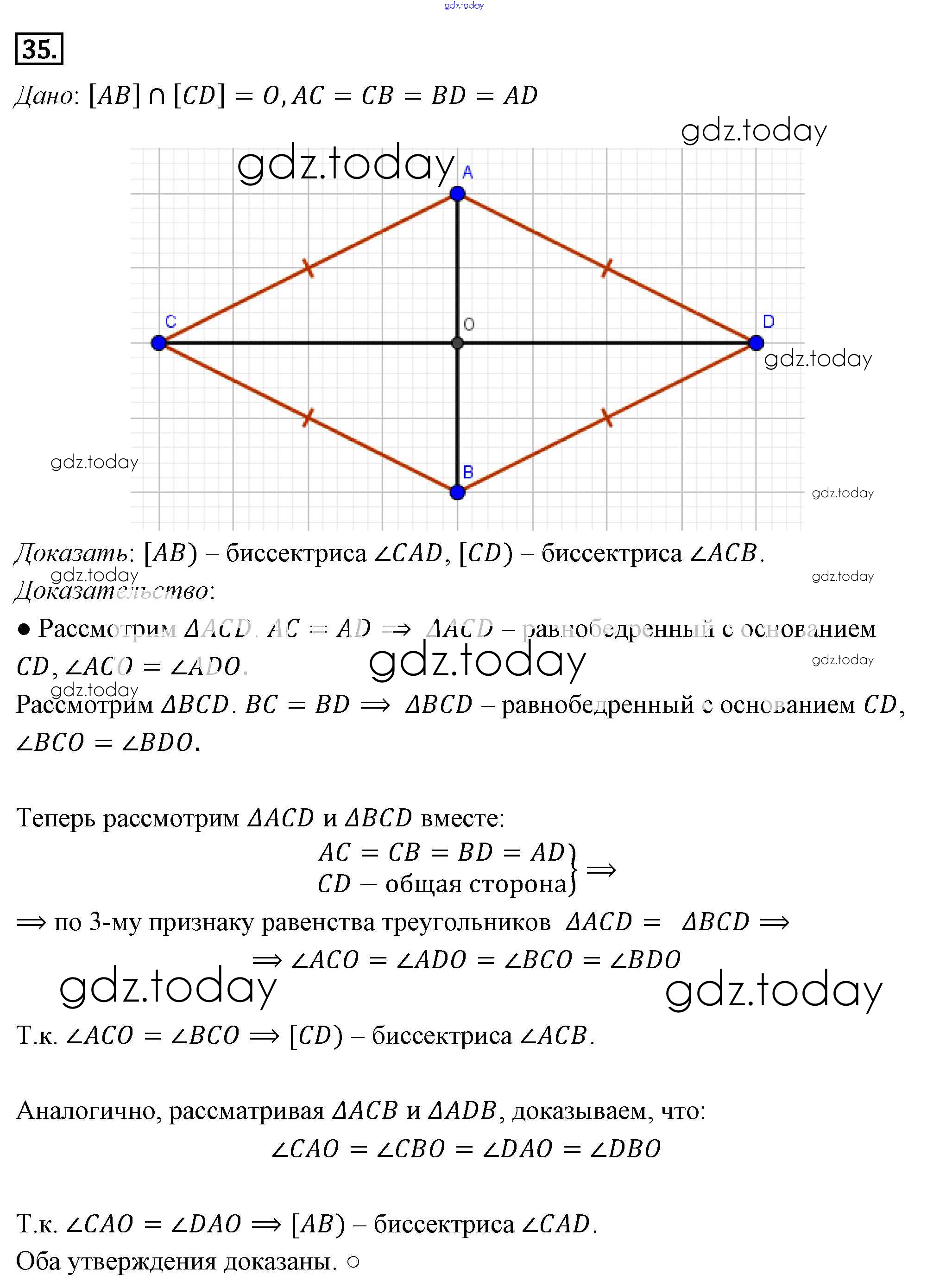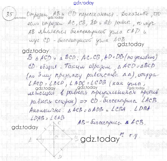 Ответы к Решение к §3. Признаки равенства треугольников 35 Учебнику по Геометрии для 7-9 класса Погорелов Просвещение 2014