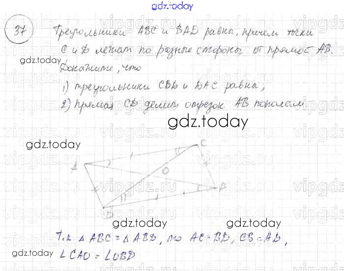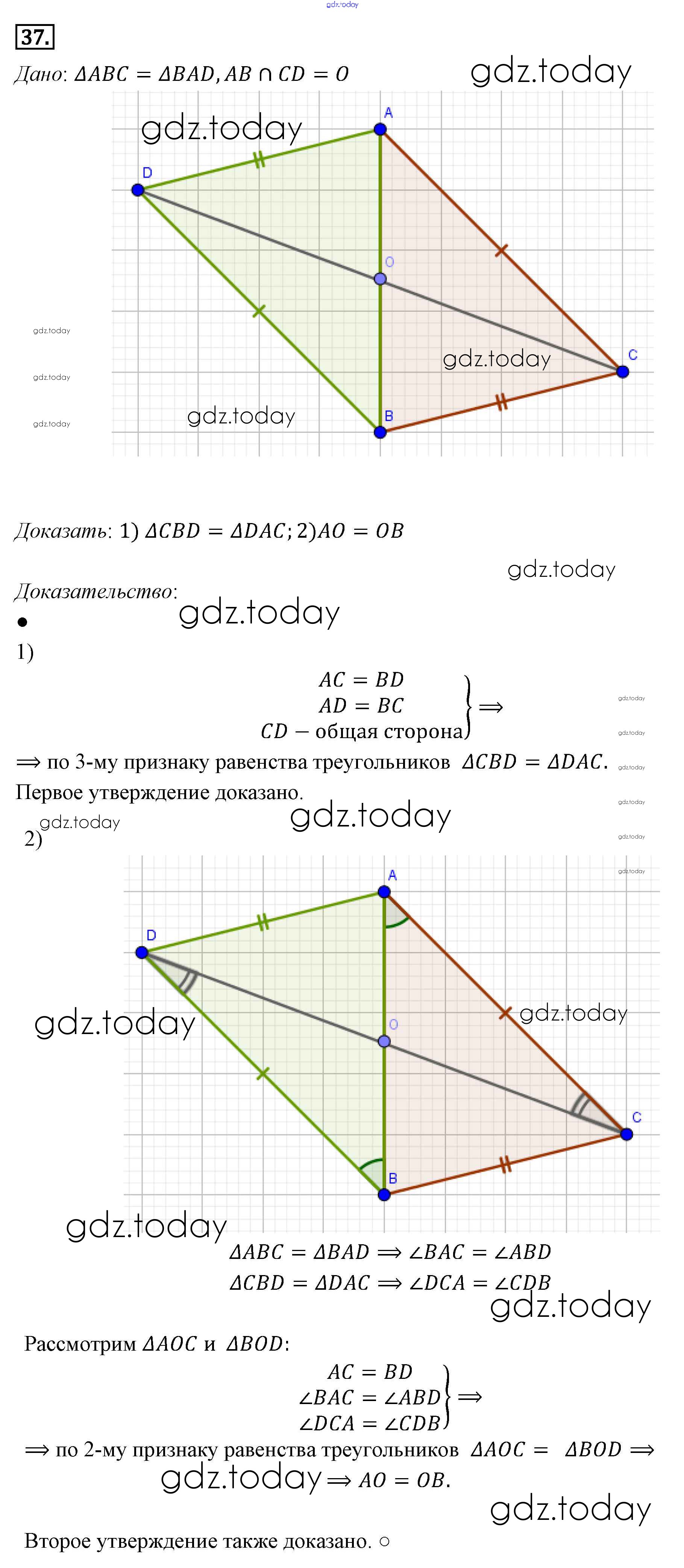 Ответы к Решение к §3. Признаки равенства треугольников 37 Учебнику по Геометрии для 7-9 класса Погорелов Просвещение 2014