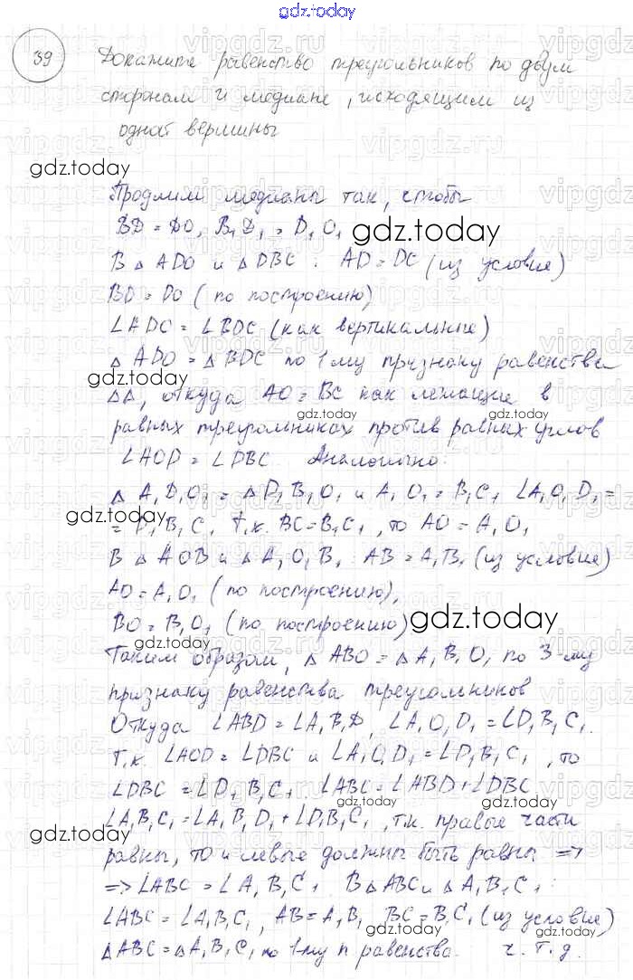 На страницах сайта gdz.today вы найдете учебный и вспомогательный материал, направленный на улучшения знаний школьной программы. ГДЗ - онлайн мир знаний Решение к §3. Признаки равенства треугольников 39 Учебнику по Геометрии для 7-9 класса Погорелов Просвещение 2014