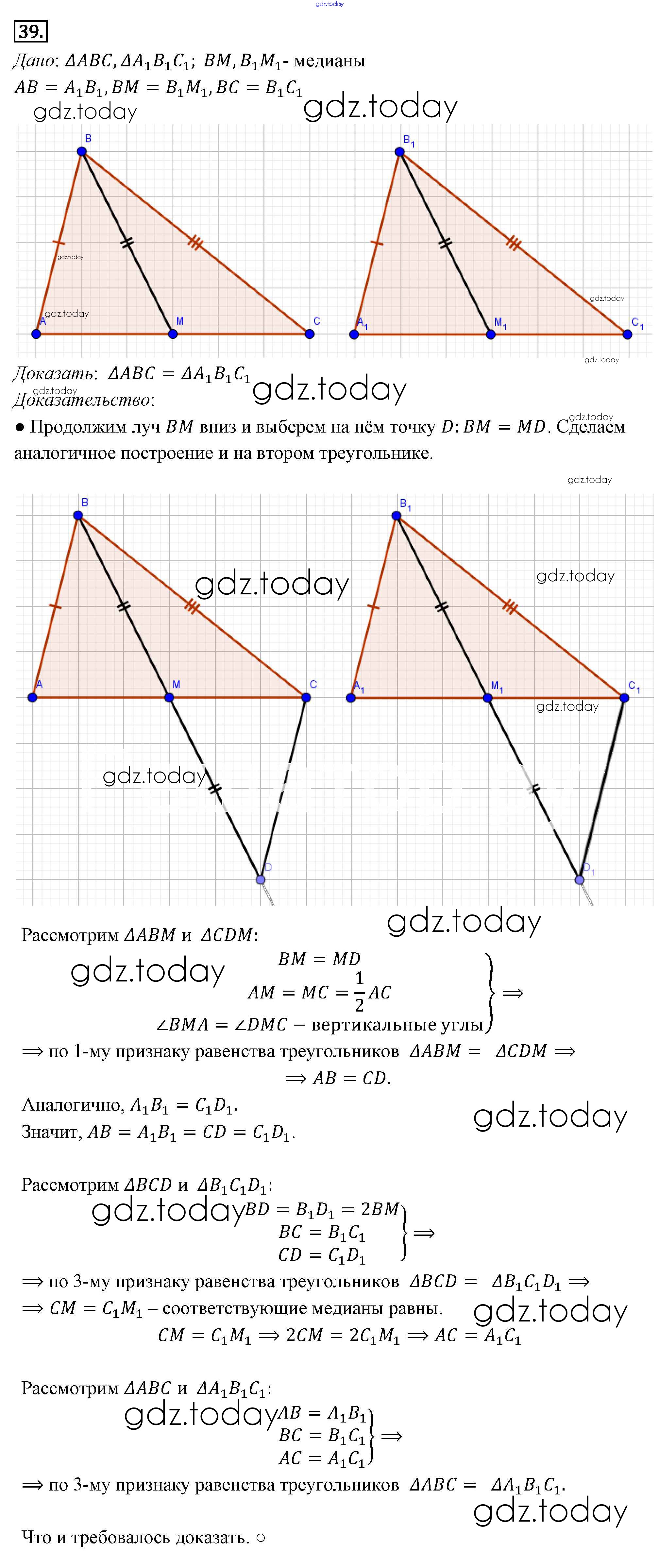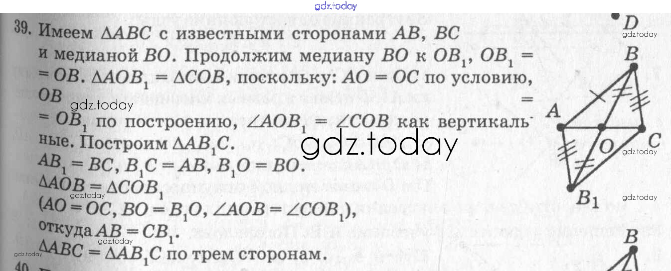 Ответы к Решение к §3. Признаки равенства треугольников 39 Учебнику по Геометрии для 7-9 класса Погорелов Просвещение 2014
