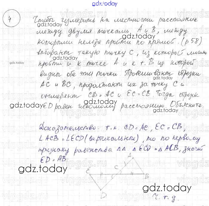 На страницах сайта gdz.today вы найдете учебный и вспомогательный материал, направленный на улучшения знаний школьной программы. ГДЗ - онлайн мир знаний Решение к §3. Признаки равенства треугольников 4 Учебнику по Геометрии для 7-9 класса Погорелов Просвещение 2014