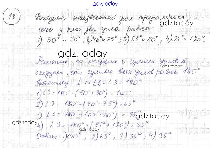 На страницах сайта gdz.today вы найдете учебный и вспомогательный материал, направленный на улучшения знаний школьной программы. ГДЗ - онлайн мир знаний Решение к §4. Сумма углов треугольника 18 Учебнику по Геометрии для 7-9 класса Погорелов Просвещение 2014
