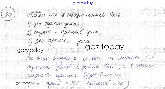 На страницах сайта gdz.today вы найдете учебный и вспомогательный материал, направленный на улучшения знаний школьной программы. ГДЗ - онлайн мир знаний Решение к §4. Сумма углов треугольника 20 Учебнику по Геометрии для 7-9 класса Погорелов Просвещение 2014