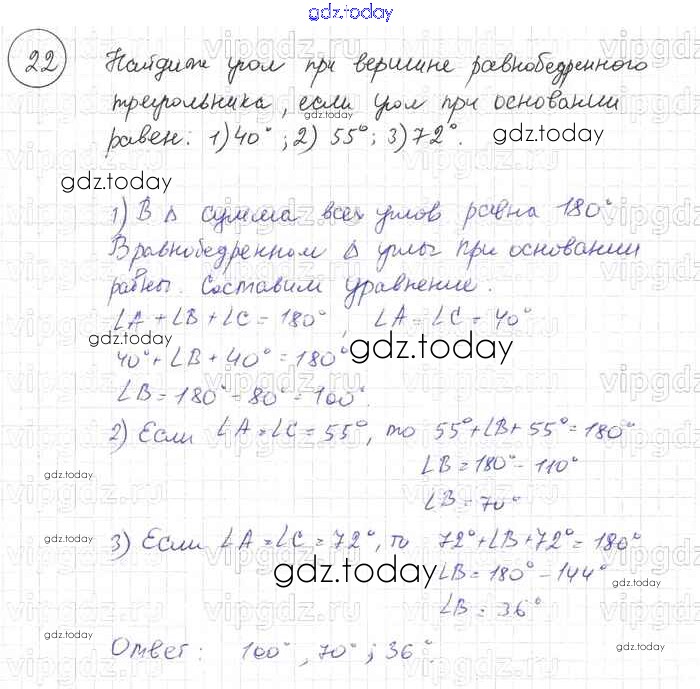 На страницах сайта gdz.today вы найдете учебный и вспомогательный материал, направленный на улучшения знаний школьной программы. ГДЗ - онлайн мир знаний Решение к §4. Сумма углов треугольника 22 Учебнику по Геометрии для 7-9 класса Погорелов Просвещение 2014