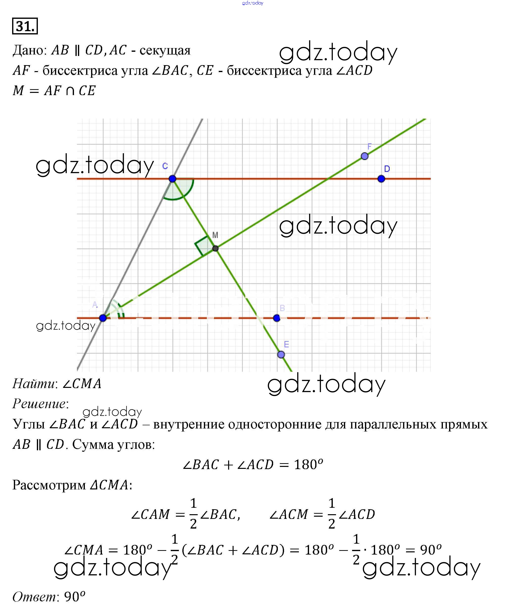 Ответы к Решение к §4. Сумма углов треугольника 31 Учебнику по Геометрии для 7-9 класса Погорелов Просвещение 2014