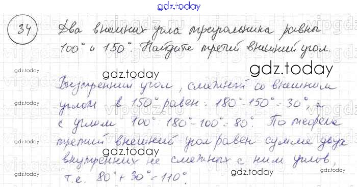 На страницах сайта gdz.today вы найдете учебный и вспомогательный материал, направленный на улучшения знаний школьной программы. ГДЗ - онлайн мир знаний Решение к §4. Сумма углов треугольника 34 Учебнику по Геометрии для 7-9 класса Погорелов Просвещение 2014