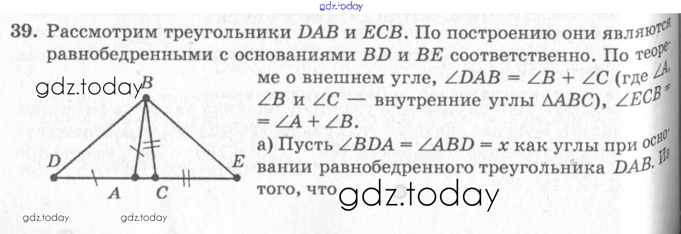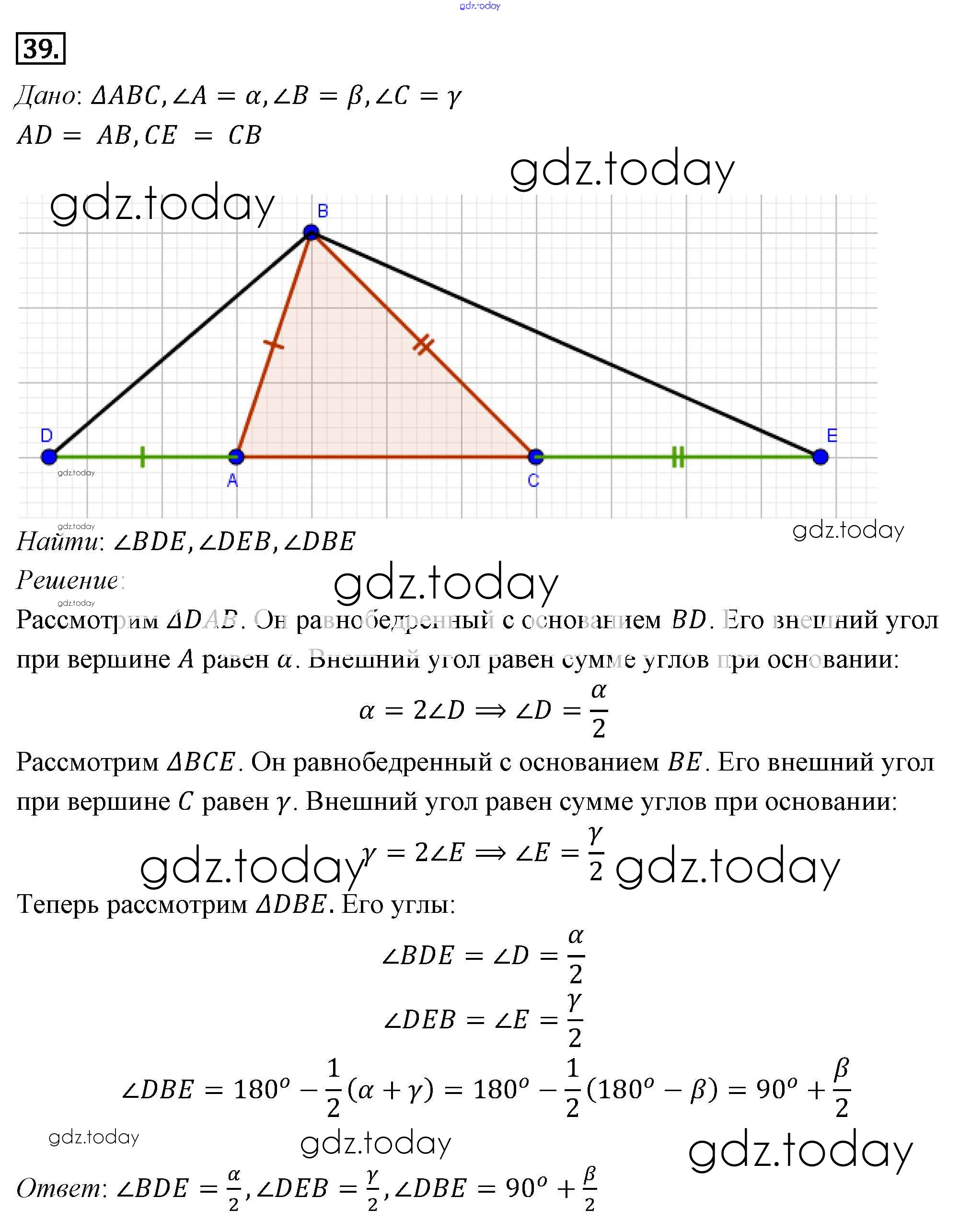 Ответы к Решение к §4. Сумма углов треугольника 39 Учебнику по Геометрии для 7-9 класса Погорелов Просвещение 2014