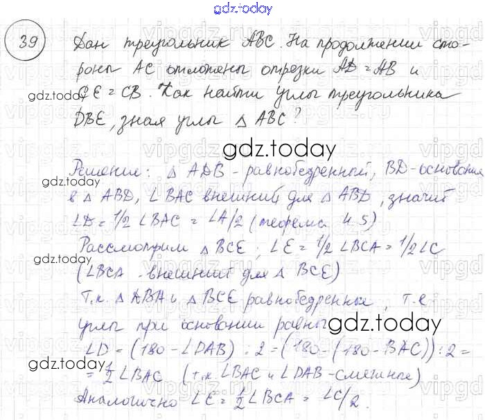 На страницах сайта gdz.today вы найдете учебный и вспомогательный материал, направленный на улучшения знаний школьной программы. ГДЗ - онлайн мир знаний Решение к §4. Сумма углов треугольника 39 Учебнику по Геометрии для 7-9 класса Погорелов Просвещение 2014