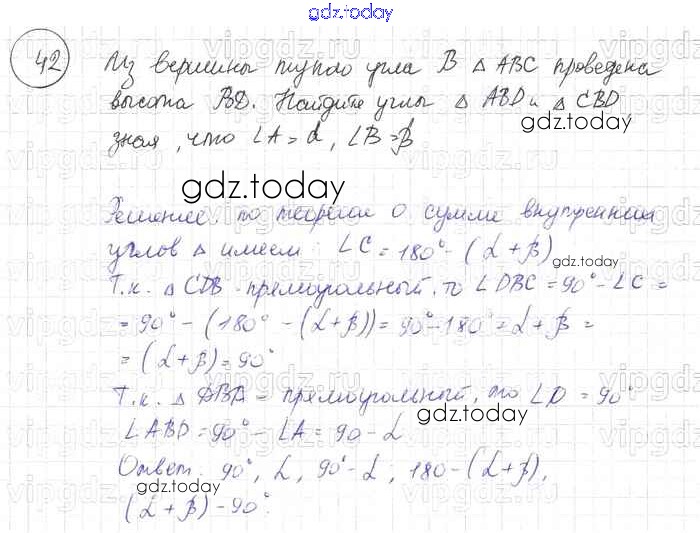 Ответы к Решение к §4. Сумма углов треугольника 42 Учебнику по Геометрии для 7-9 класса Погорелов Просвещение 2014