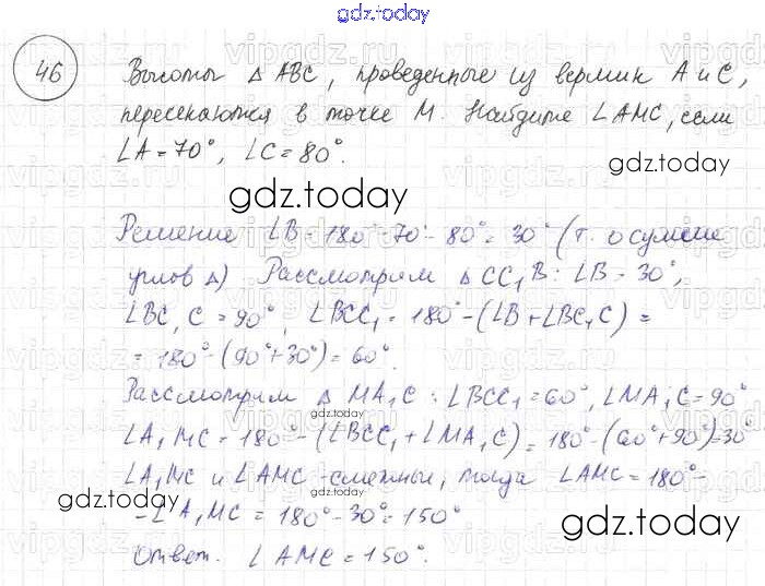 Ответы к Решение к §4. Сумма углов треугольника 46 Учебнику по Геометрии для 7-9 класса Погорелов Просвещение 2014