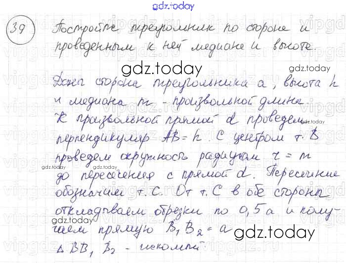 Ответы к Решение к §5. Геометрические построения 39 Учебнику по Геометрии для 7-9 класса Погорелов Просвещение 2014