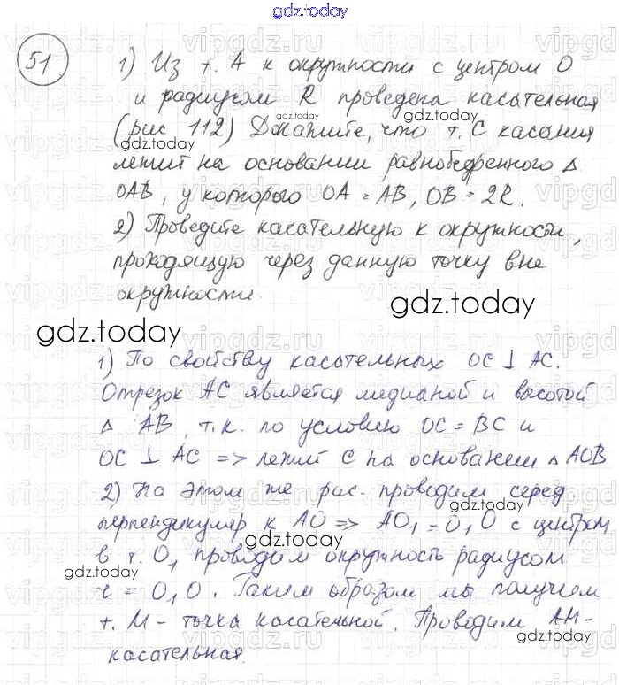 На страницах сайта gdz.today вы найдете учебный и вспомогательный материал, направленный на улучшения знаний школьной программы. ГДЗ - онлайн мир знаний Решение к §5. Геометрические построения 51 Учебнику по Геометрии для 7-9 класса Погорелов Просвещение 2014