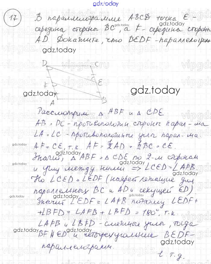 На страницах сайта gdz.today вы найдете учебный и вспомогательный материал, направленный на улучшения знаний школьной программы. ГДЗ - онлайн мир знаний Решение к §6. Четырёхугольники 17 Учебнику по Геометрии для 7-9 класса Погорелов Просвещение 2014