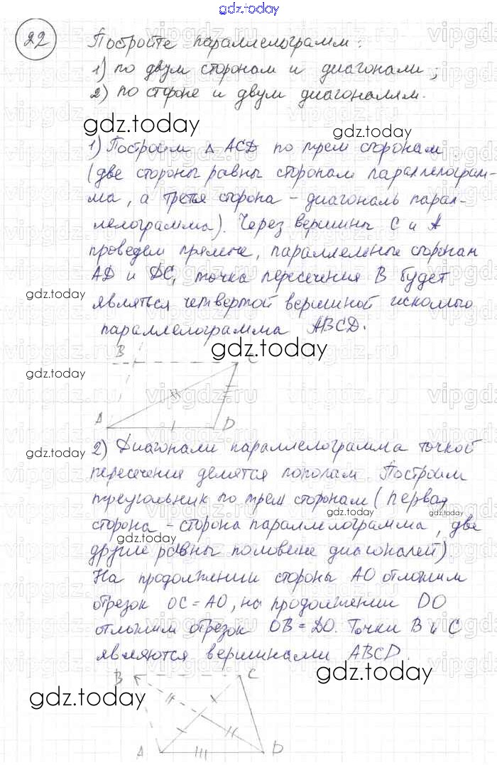 Ответы к Решение к §6. Четырёхугольники 22 Учебнику по Геометрии для 7-9 класса Погорелов Просвещение 2014