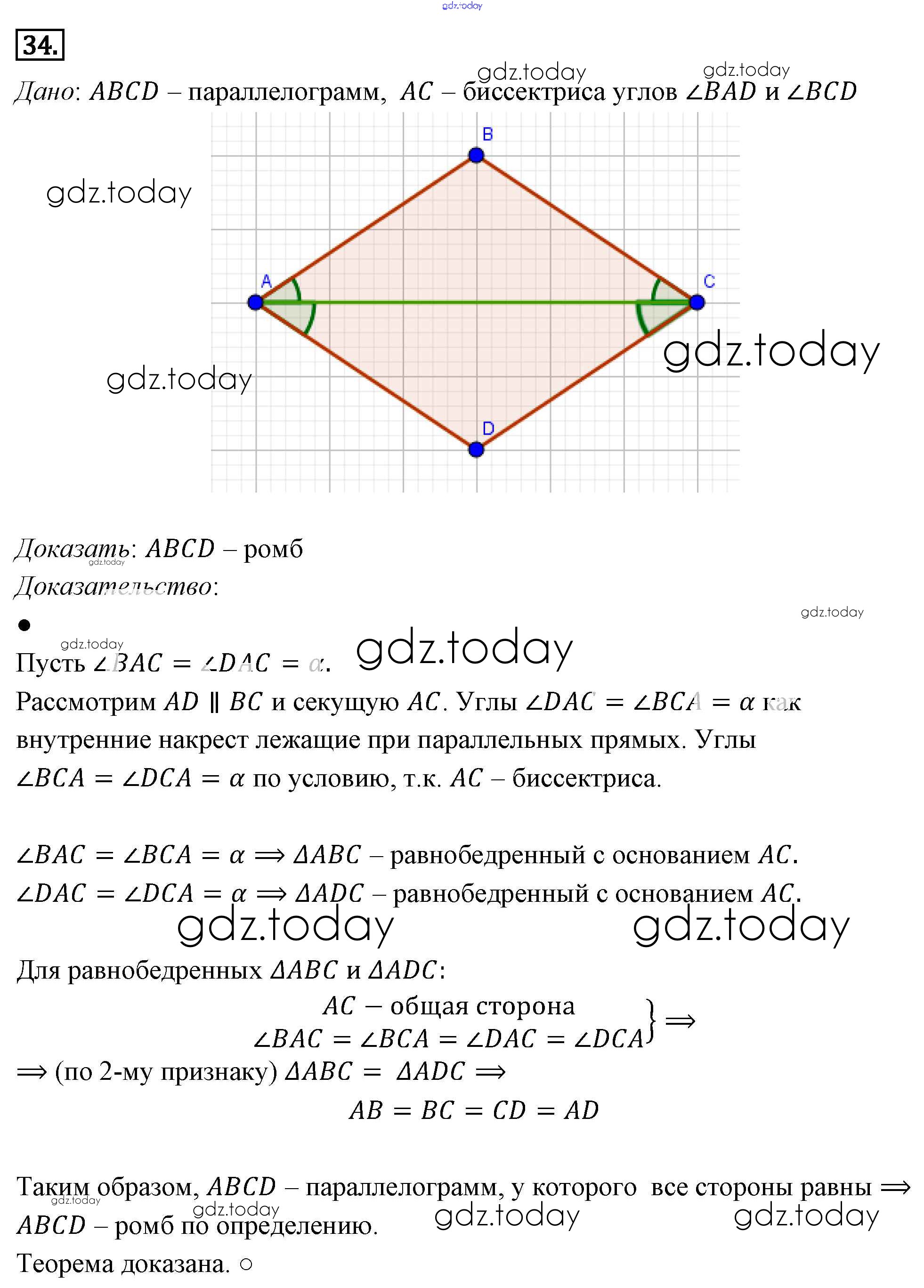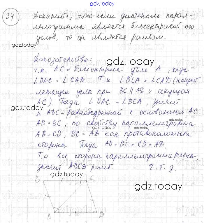 Ответы к Решение к §6. Четырёхугольники 34 Учебнику по Геометрии для 7-9 класса Погорелов Просвещение 2014