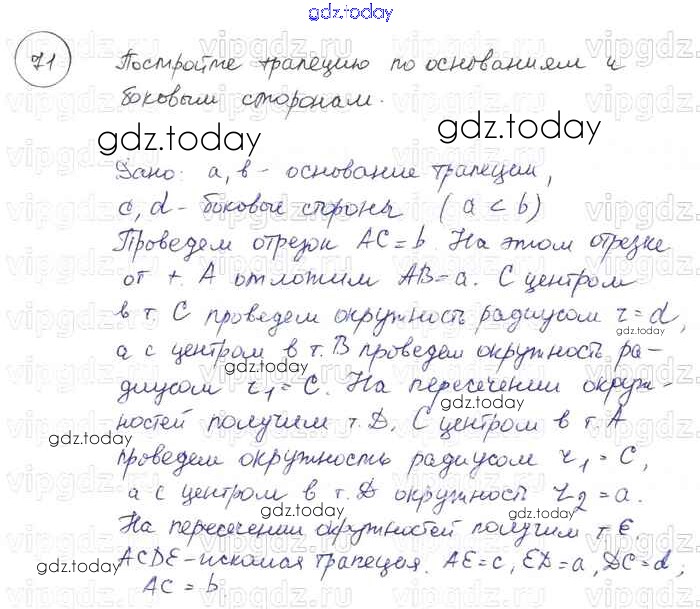 На страницах сайта gdz.today вы найдете учебный и вспомогательный материал, направленный на улучшения знаний школьной программы. ГДЗ - онлайн мир знаний Решение к §6. Четырёхугольники 71 Учебнику по Геометрии для 7-9 класса Погорелов Просвещение 2014