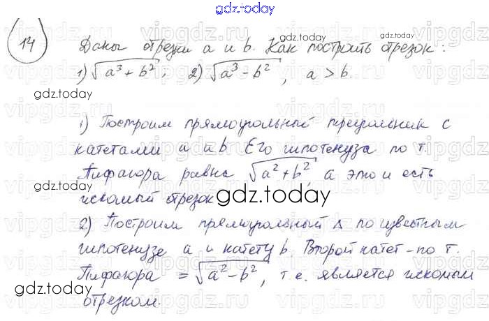 На страницах сайта gdz.today вы найдете учебный и вспомогательный материал, направленный на улучшения знаний школьной программы. ГДЗ - онлайн мир знаний Решение к §7. Теорема Пифагора 14 Учебнику по Геометрии для 7-9 класса Погорелов Просвещение 2014