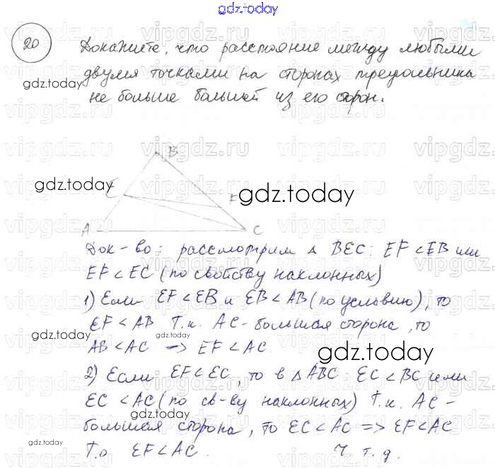 На страницах сайта gdz.today вы найдете учебный и вспомогательный материал, направленный на улучшения знаний школьной программы. ГДЗ - онлайн мир знаний Решение к §7. Теорема Пифагора 20 Учебнику по Геометрии для 7-9 класса Погорелов Просвещение 2014