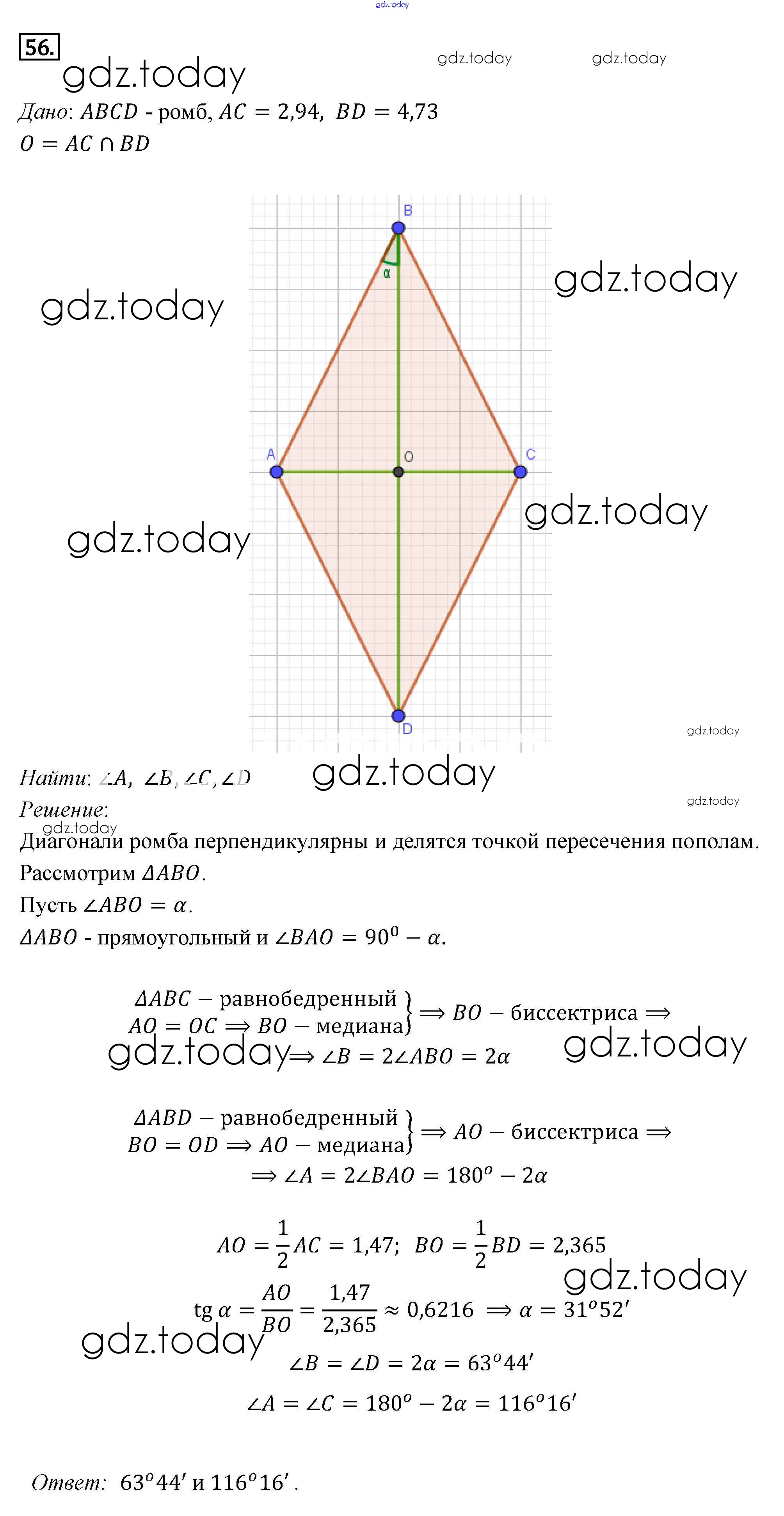 Ответы к Решение к §7. Теорема Пифагора 56 Учебнику по Геометрии для 7-9 класса Погорелов Просвещение 2014