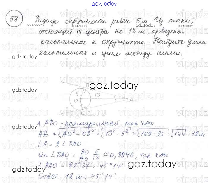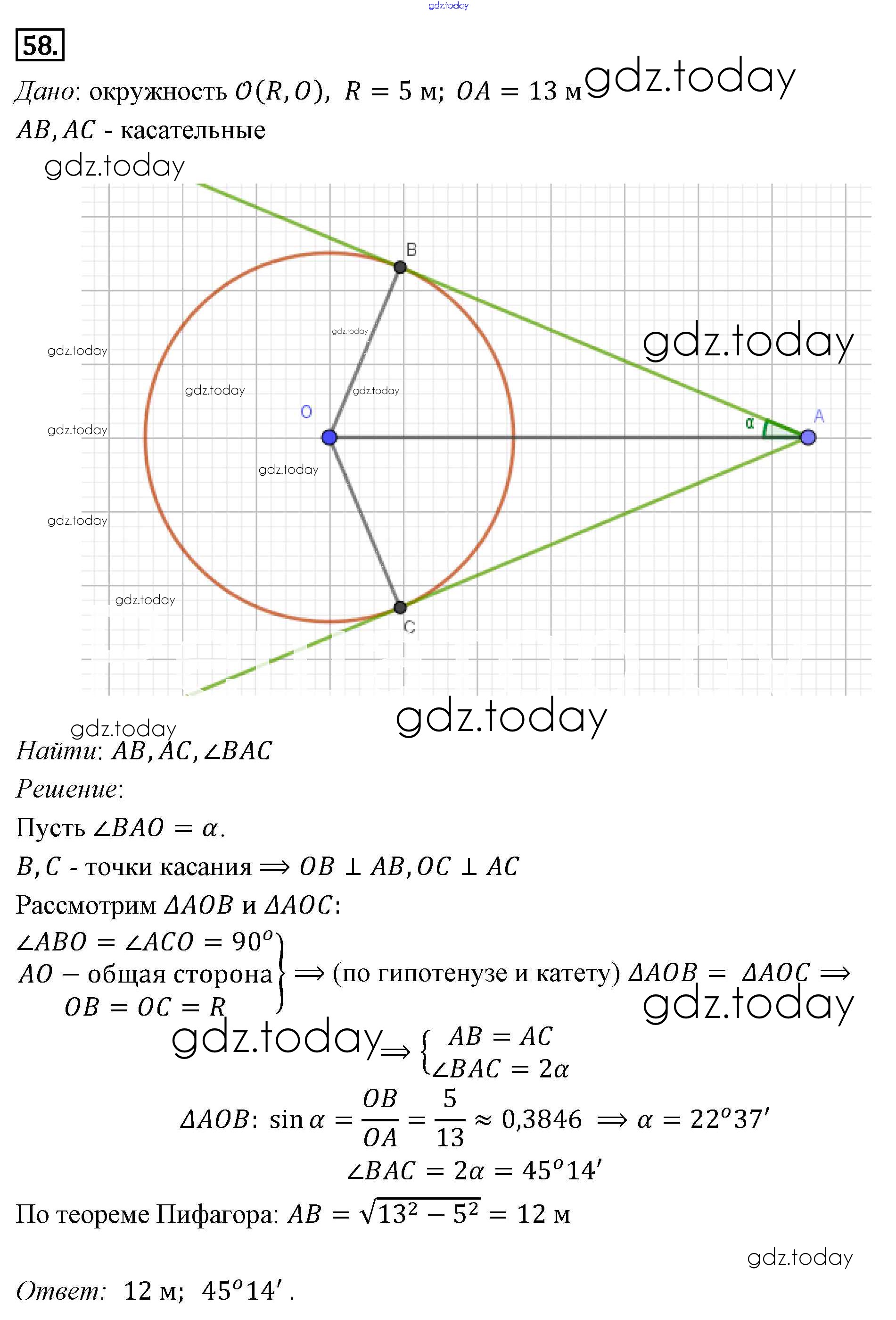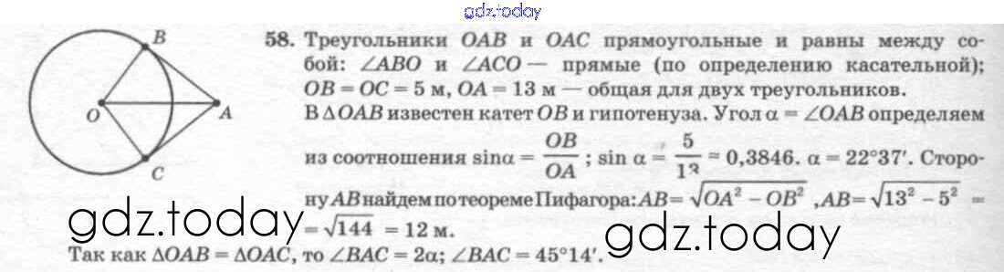 Ответы к Решение к §7. Теорема Пифагора 58 Учебнику по Геометрии для 7-9 класса Погорелов Просвещение 2014