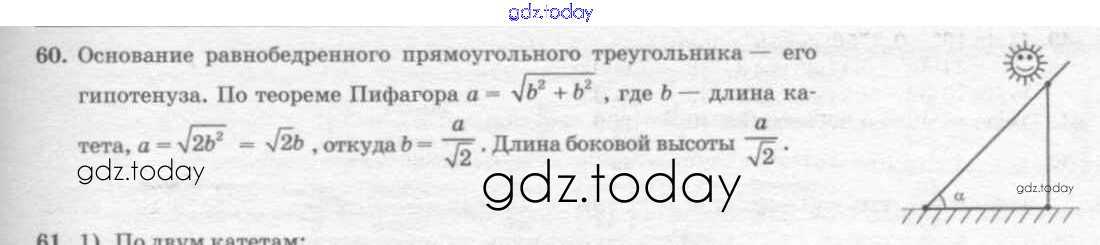 На страницах сайта gdz.today вы найдете учебный и вспомогательный материал, направленный на улучшения знаний школьной программы. ГДЗ - онлайн мир знаний Решение к §7. Теорема Пифагора 60 Учебнику по Геометрии для 7-9 класса Погорелов Просвещение 2014