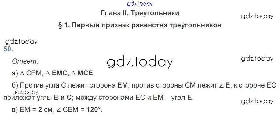 На страницах сайта gdz.today вы найдете учебный и вспомогательный материал, направленный на улучшения знаний школьной программы. ГДЗ - онлайн мир знаний Решение к задачам 50 Рабочей тетради по Геометрии для 7 класса Атанасян, Бутузов Просвещение 2015