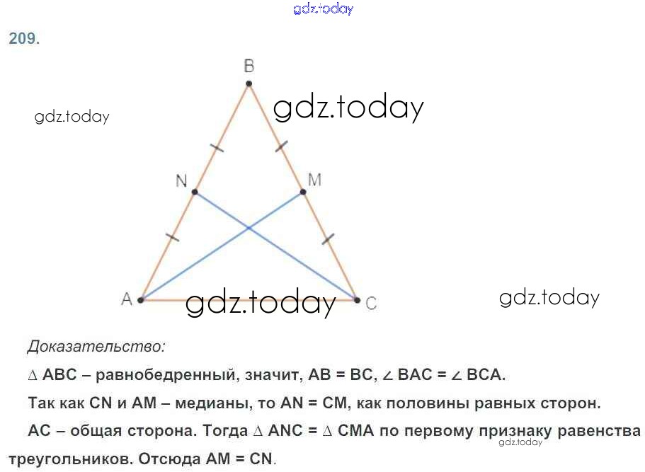 Ответы к Решение к задачам 209 Рабочей тетради по Геометрии для 7 класса Дудницын Просвещение 2017