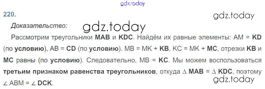 На страницах сайта gdz.today вы найдете учебный и вспомогательный материал, направленный на улучшения знаний школьной программы. ГДЗ - онлайн мир знаний Решение к задачам 220 Рабочей тетради по Геометрии для 7 класса Дудницын Просвещение 2017
