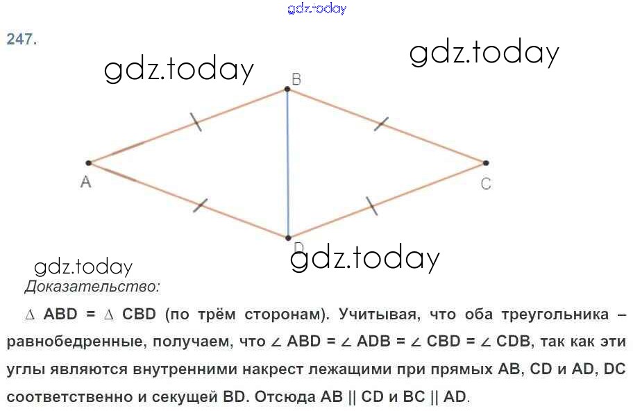 На страницах сайта gdz.today вы найдете учебный и вспомогательный материал, направленный на улучшения знаний школьной программы. ГДЗ - онлайн мир знаний Решение к задачам 247 Рабочей тетради по Геометрии для 7 класса Дудницын Просвещение 2017